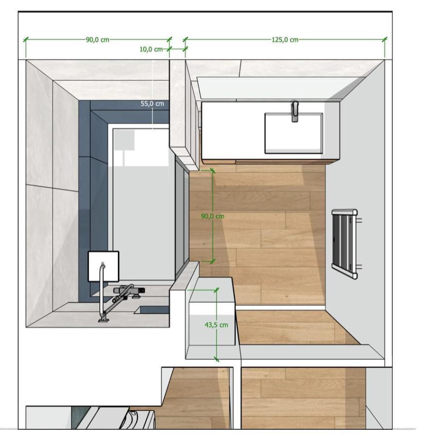 préparation parfaite des supports. Les anciens fonds alvéolaires ayant été supprimés, les nouvelles cloisons en plaques hydrofuges ont permis une pose stable et durable. Le calepinage a été anticipé