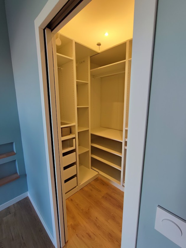 Dressing indépendant avec porte à galandage, circulation fluide et rangements optimisés